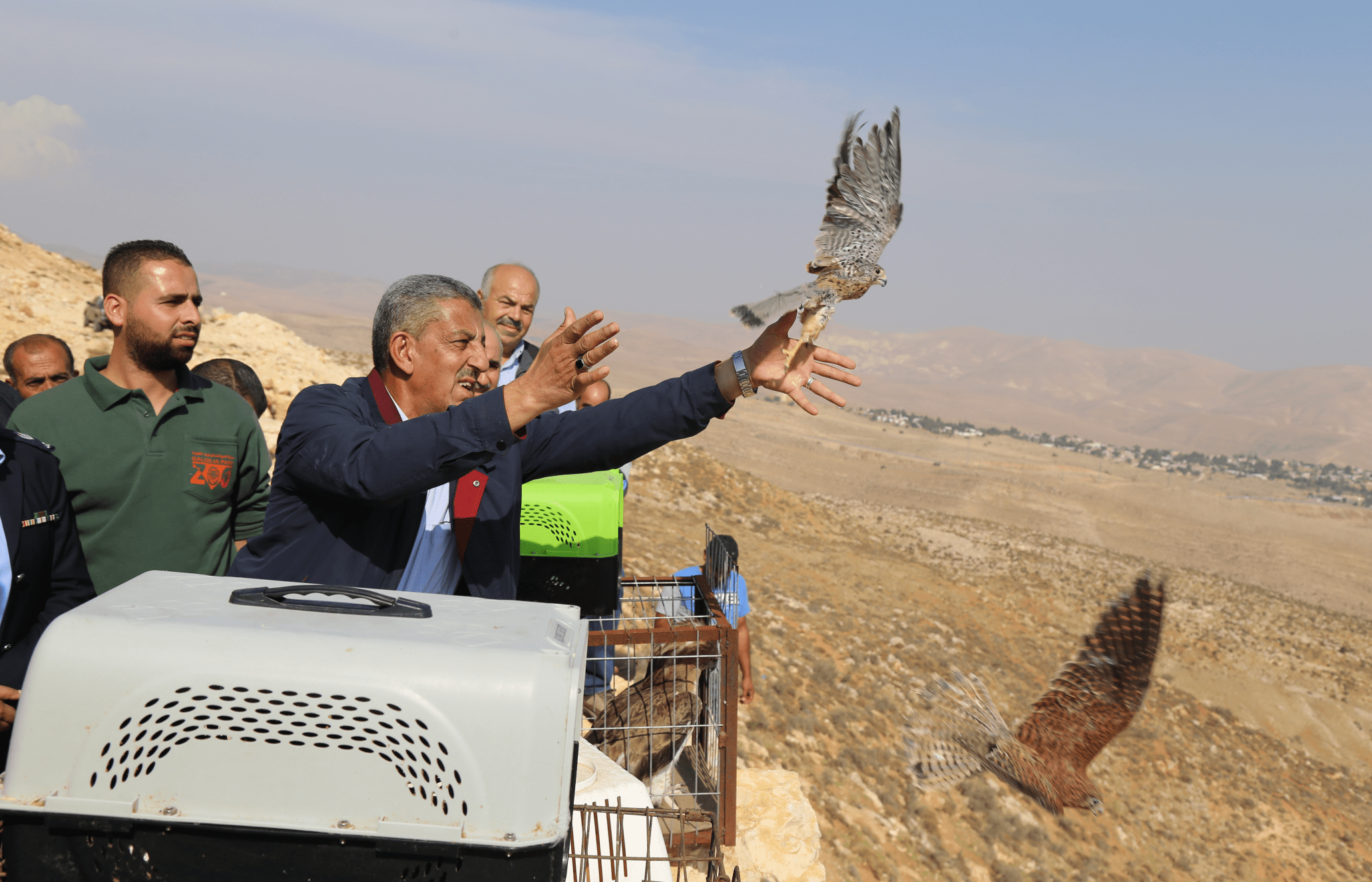 The Palestinian Environmental Quality Authority, in collaboration with the Palestinian Nature Society, the National Zoo, the Environmental Police, and the Village Council of Douma, released a group of Palestinian mountain gazelles and rare predatory birds into the Fasayil Nature Reserve near the village of Douma, southeast of Nablus, after they were rehabilitated and treated.